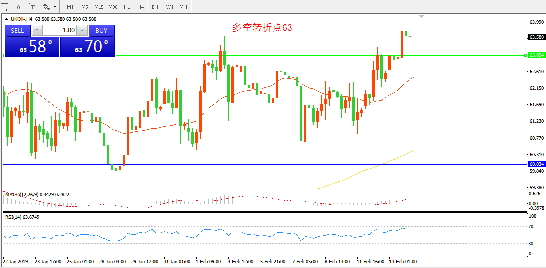 交易策略:在63.00之上看涨,目标63.00  67.00