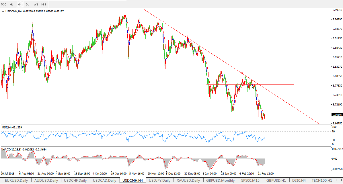 美元兑人民币USDCNH 4小时图: