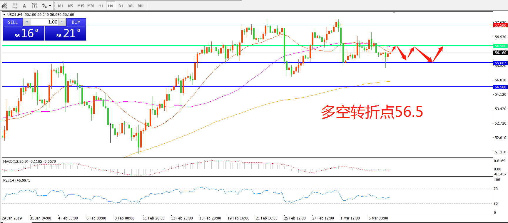 交易策略:在56.50 之下看跌,目标55.60 54.50