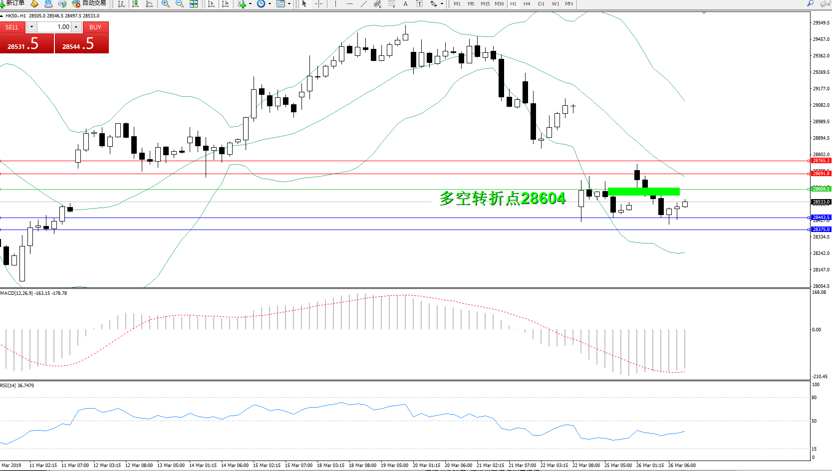 香港恒生指数高开后震荡走低转跌,尾盘再度回升收复部分失地,截至收盘,恒指微涨0.15%,报28566.91点。鉴于全球经济渐趋不明朗,预期市场气氛将开始变得审慎,可留意成成交量会否出现变化。当前业绩期即将步入尾声,而此外本周仍有多只重磅内银股公布业绩,虽然预期业绩难有惊喜,但仍须留意其表现。由于大市缺乏利好因素支持,即使反弹亦暂难突破29000点水平。
