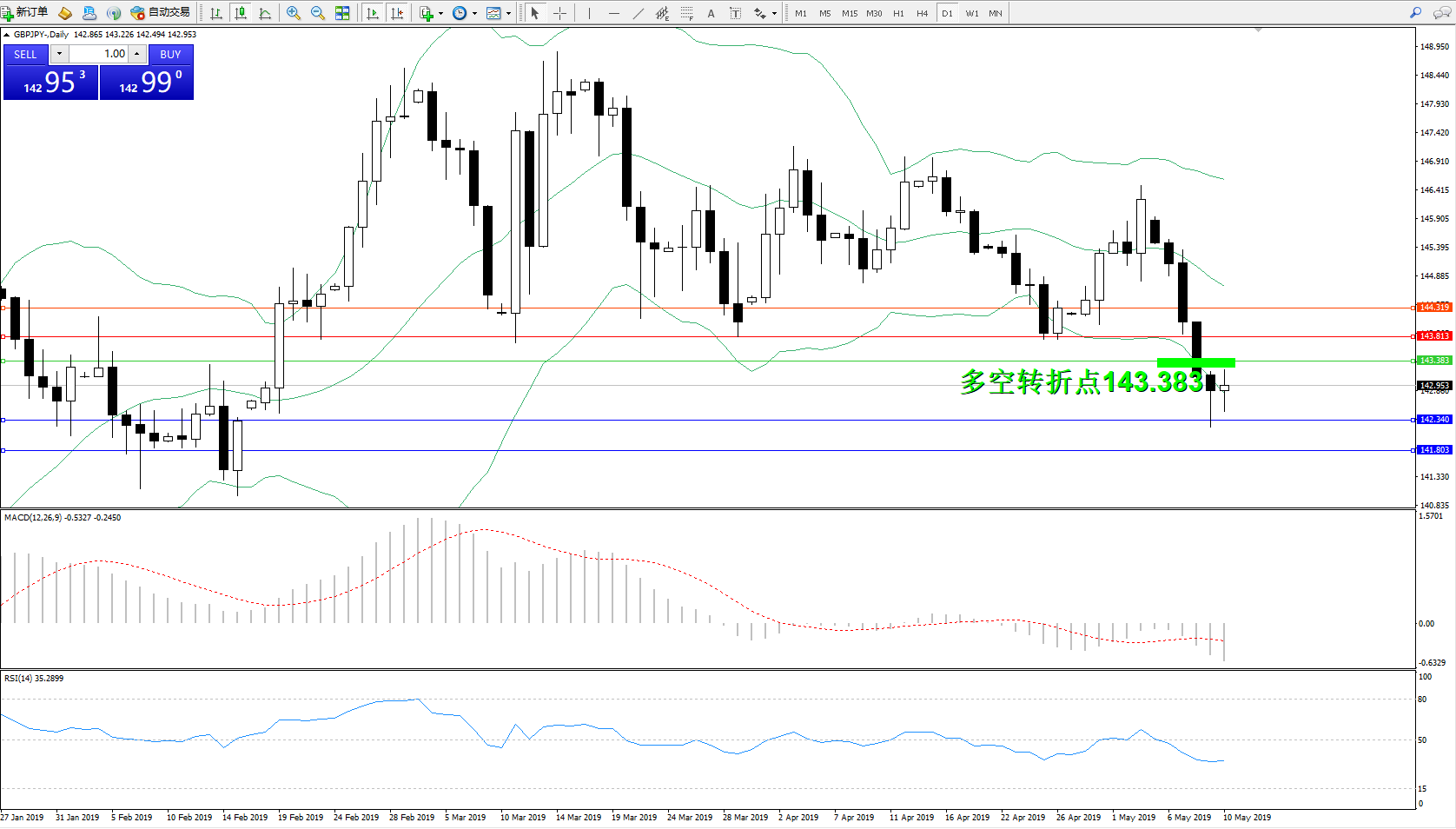 因英国脱欧谈判没有取得任何突破的迹象,市场怀疑执政的保守党和反对党工党之间的脱欧谈判不会取得任何进展,人们也日益担忧首相特雷莎·梅领导权面临挑战。短时间而言市场仍将关注脱欧进展,并着重关注这两个方面:首先英国是否会举行二次公投。此前英国反对党工党表示如果首相特蕾莎·梅拒绝改变退欧协议,将支持第二次投票。其次是英国在欧洲议会的选举。上周保守党在英国地方议会选举遭遇惨败,而本月稍后,其在被迫继续参加的欧盟议会选举中的选情也被提前看衰,大批脱欧派选民正因为对脱欧进程的失望而抛弃保守党,这意味着梅姨在此后还会面临着益发加大的压力。