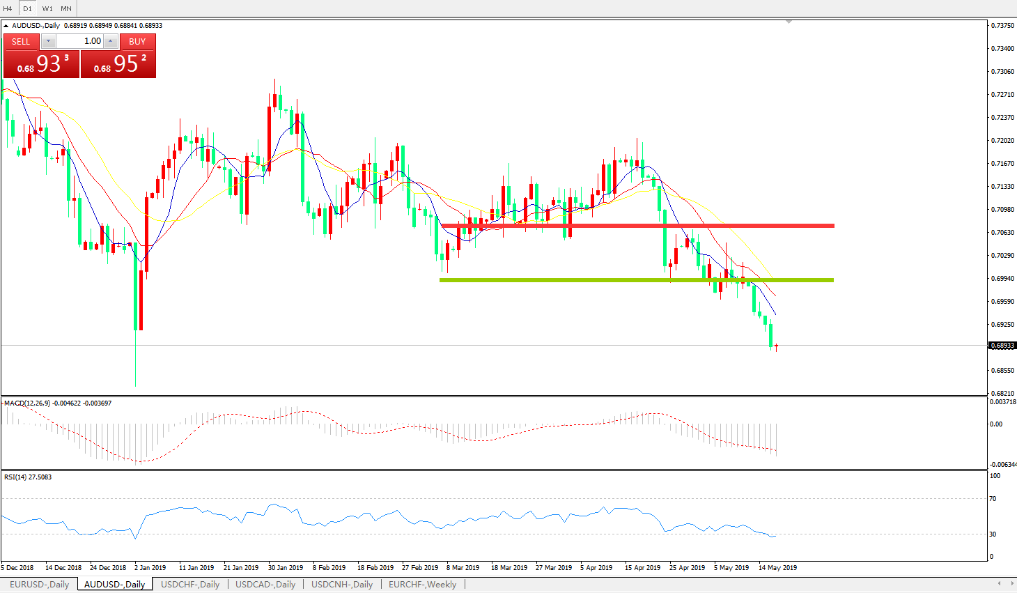 在澳大利亚4月份就业报告公布后,外汇市场开始预计澳洲联储下一步举措。该报告显示,全职就业人数下降,将失业率从3月份的5.1%推至5.2%。澳洲联储上周并没有实行降息,并明确表示,他们认为当前通胀率过低,劳动力市场依然疲软。现在失业率上升,更加深了市场对6月降息的预期,并将澳元打压至更低。与亚洲市场中,该指数现跌约0.25%。澳元兑美元汇率接近2016年初的低点,若这一低点被打破,澳元或将回到金融危机时水平