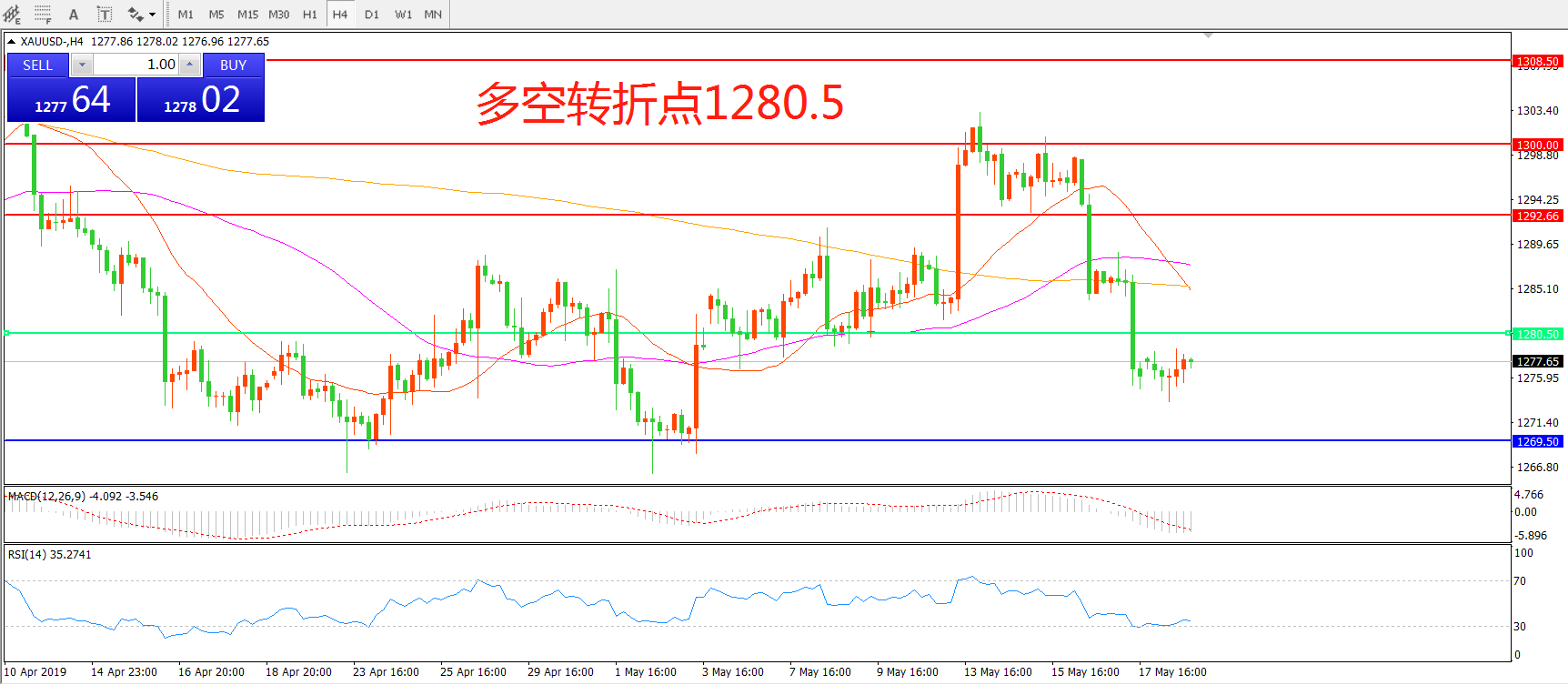 多空转折点:1280.50