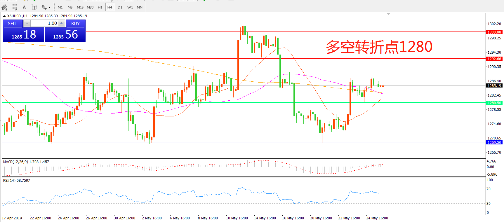 多空转折点:1280.50