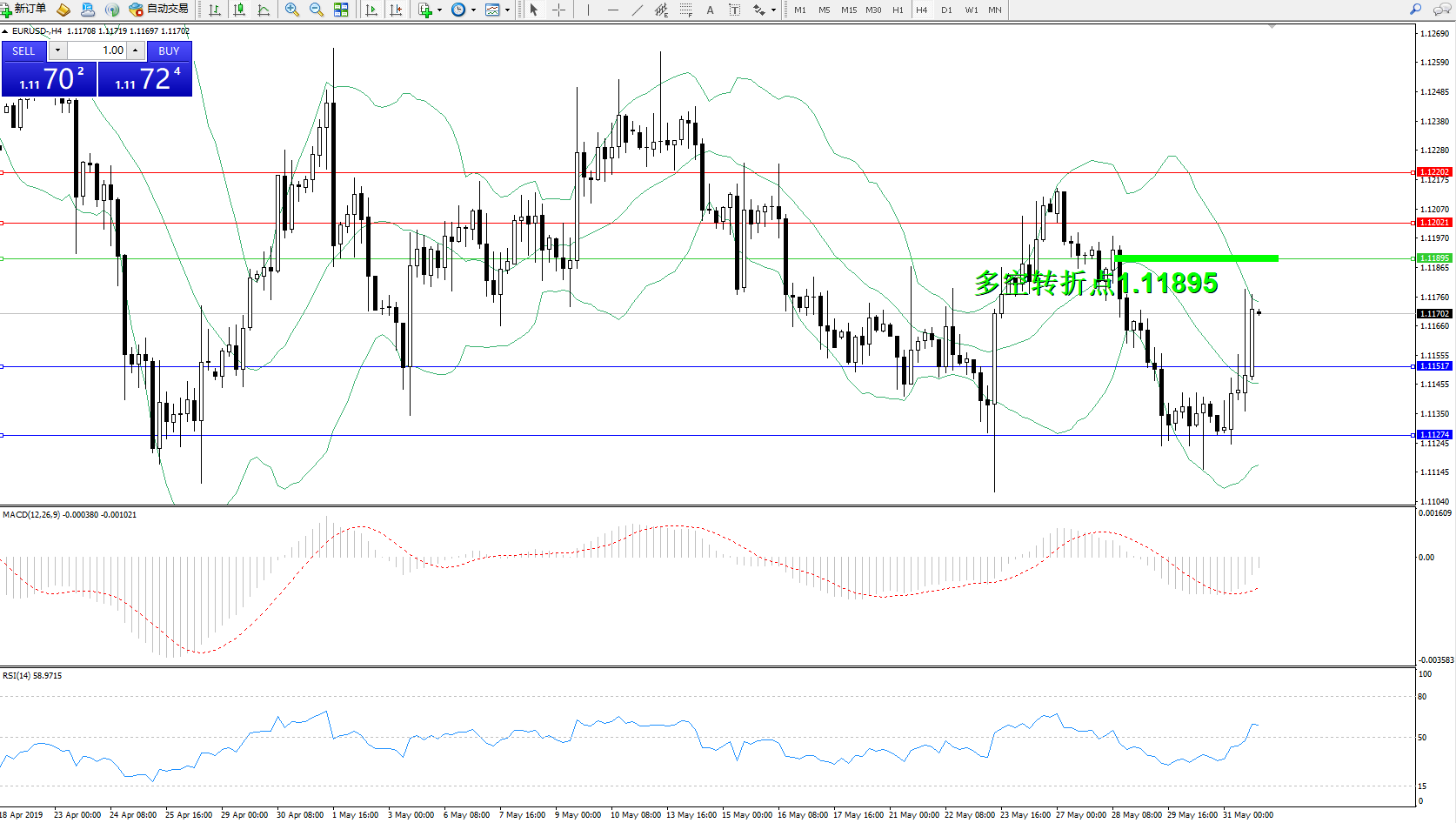 交易策略:1.11895下方看跌,目标1.11517、1.11274