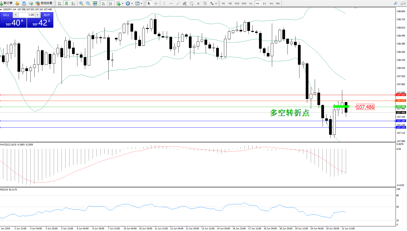 由于伊朗和美国之间的紧张局势不断加剧,使得避险日元获得市场青睐,美元兑日元大幅走弱,最低触及107.03,为1月3日以来新低。伊朗称将在6月27日超过核协议规定的低浓缩铀储备上限;然后美国军用无人机被伊朗对空导弹击落在霍尔木兹海峡上空的国际领空;虽然特朗普淡化伊朗攻击,但据报道他曾批准打击伊朗,不过之后又撤回决定。此外,美国还将向中东增派大约千人的部队,这些都令地缘局势升温。有消息称,特朗普搁置了对伊朗的导弹袭击,且更愿意与德黑兰进行对话,尤其是在伊朗核计划问题上。但伊朗方面目前拒绝了这一提议,因此形势仍然很紧张。
