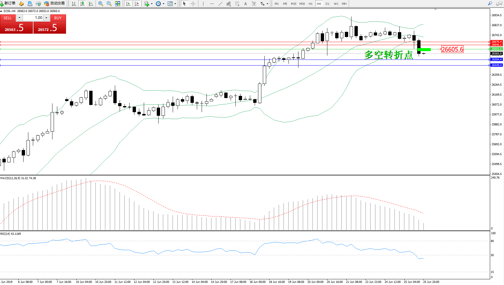 道琼斯指数周二收盘下跌179.30点,跌幅0.67%,报26548.22点。美联储主席鲍威尔演讲称,美国经济面临的下行风险近来有所增加,使决策者更有理由在一定程度上下调利率。贸易不确定性以及全球增速的担忧可能会促进降息。美联储正在考量是否需要货币政策的宽松来应对不确定性。通胀将会回升至2%,但速度比此前预期的要慢。货币政策不应该对市场情绪的短期波动反应过度。