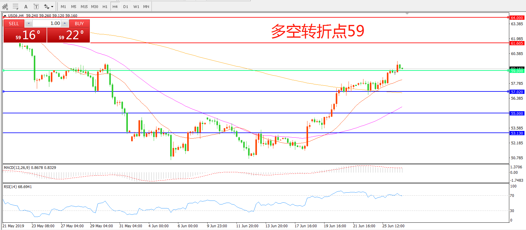 交易策略:在59.00之上看涨,目标61.00 64.00