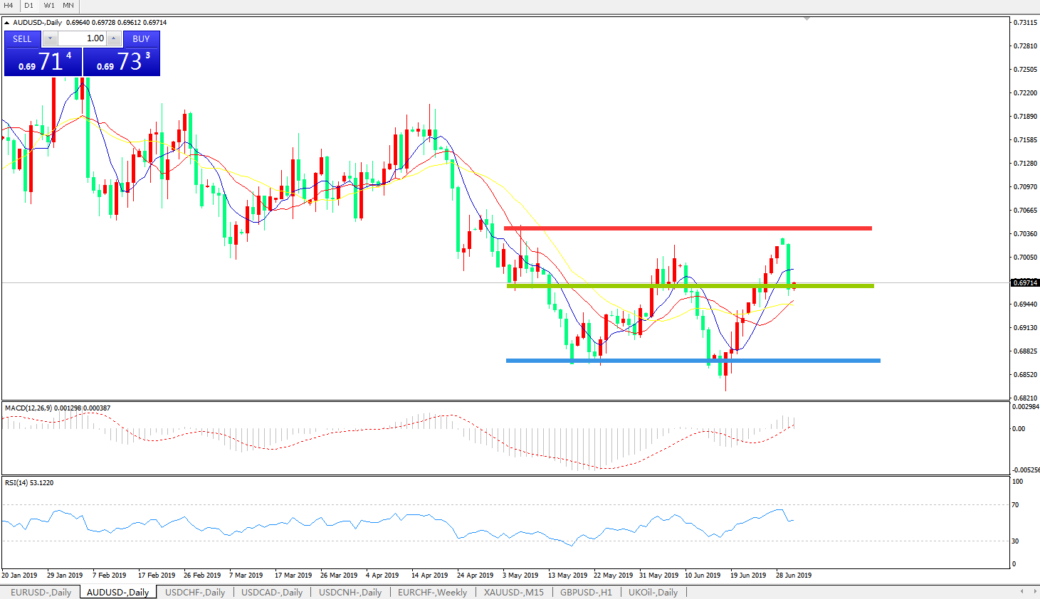 交易策略:0.6960上方看涨,目标0.7020、0.7100