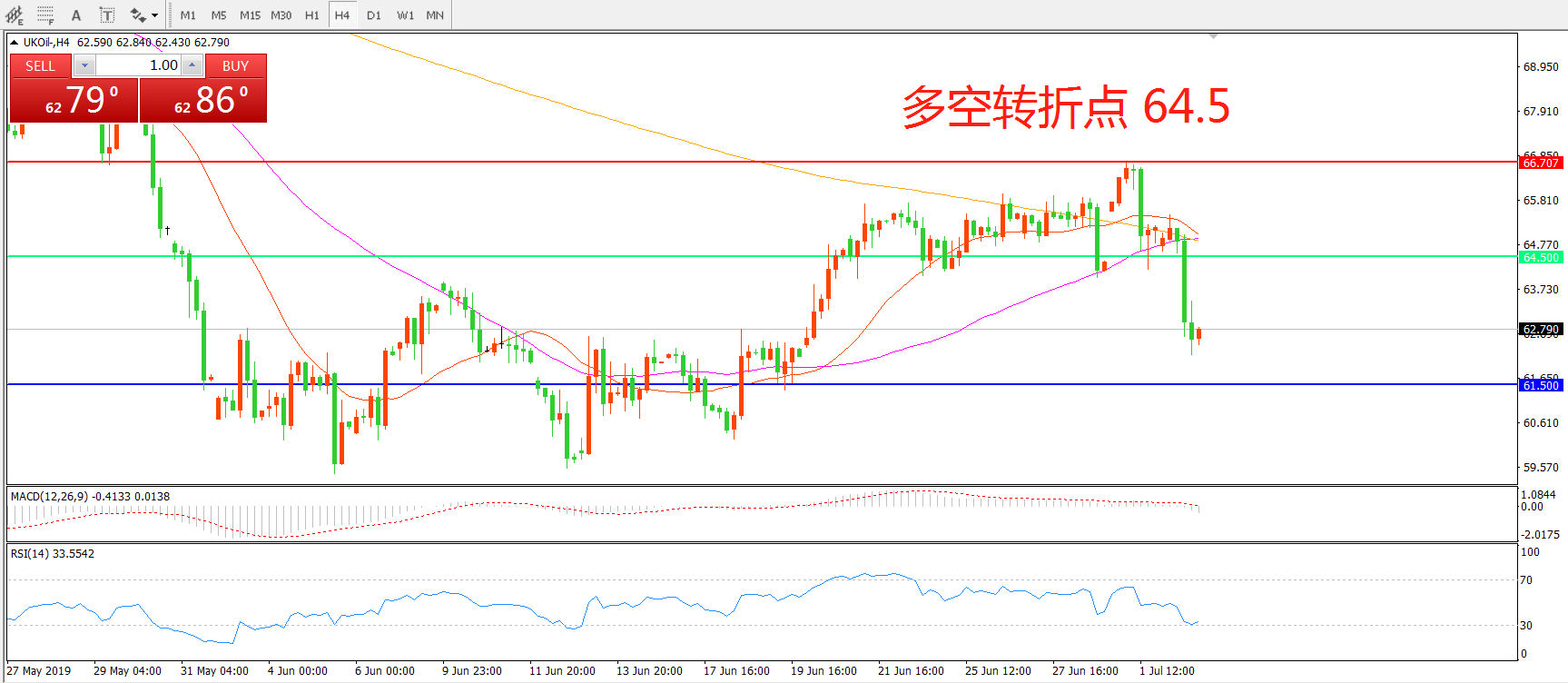 周二(7月2日) 全球原油市场需求放缓的忧虑暂时抵消石油输出国组织(OPEC)延长减产协议带来的利好影响,油价盘中重挫,布油一度暴跌逾4%,最终收报62.79美元/桶。