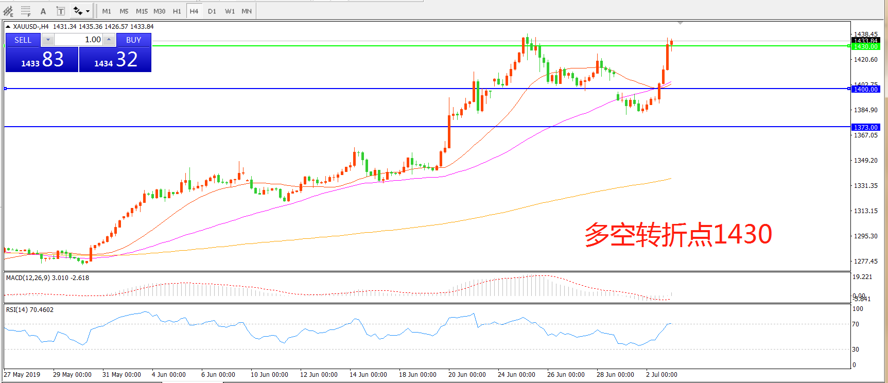 备选策略:在1430.00之上看跌,目标1400.00 1373.00