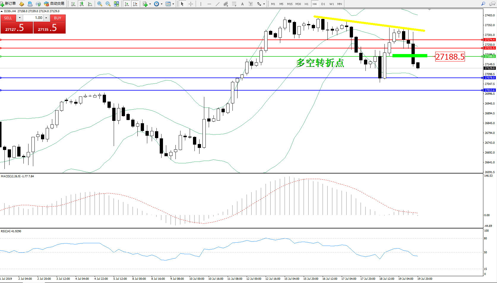 交易策略:27188下方看跌,目标27078、27013