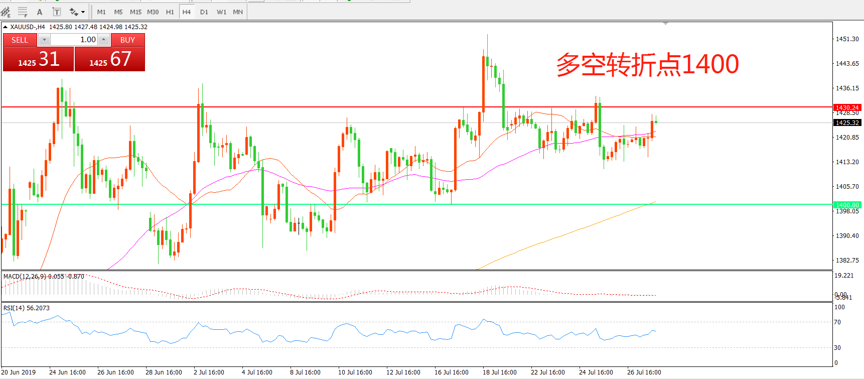 交易策略:在1400.00之上看涨,目标1430.00 1450.00