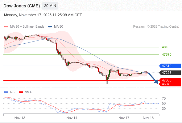 在 47510 之下,看跌,目标价位为 47050 ,然后为 46940 。
