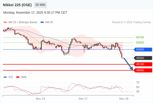 在 50050 之下,看跌,目标价位为 49190 ,然后为 48840 。