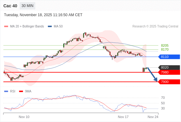 在 8110 之下,看跌,目标价位为 7980 ,然后为 7900 。