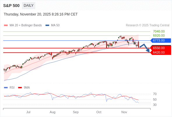 交易策略: 在 6773.00 之下,看跌,目标价位为 6550.00 ,然后为 6420.00 。