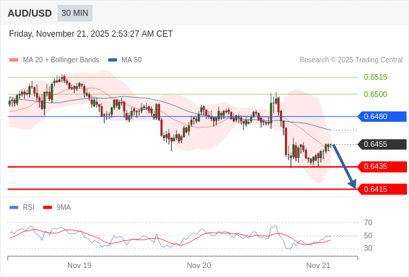 在 0.6480 之下,看跌,目标价位为 0.6435 ,然后为 0.6415 。