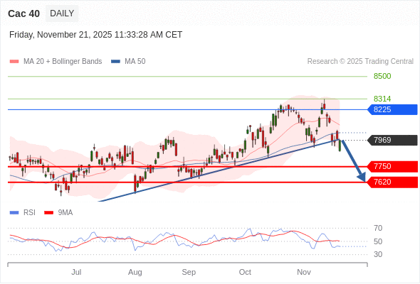 Cac 40 短线: 存在压力。