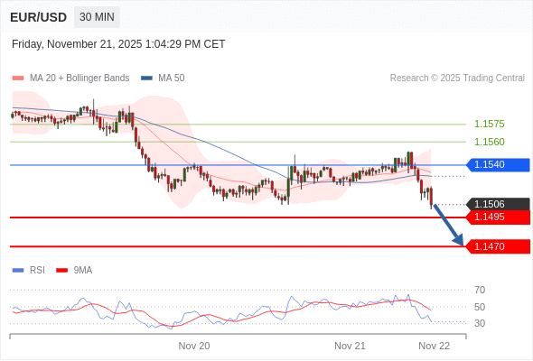 在 1.1540 之下,看跌,目标价位为 1.1495 ,然后为 1.1470 。