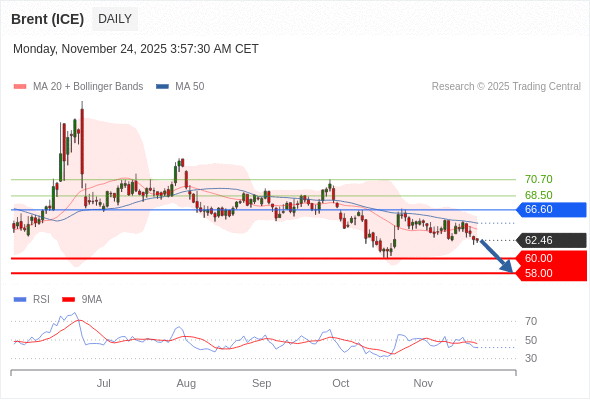 在 66.60 之下,看跌,目标价位为 60.00 ,然后为 58.00 。