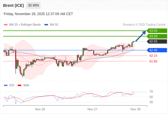 在 62.45 之上,看涨,目标价位为 63.20 ,然后为 63.50 。