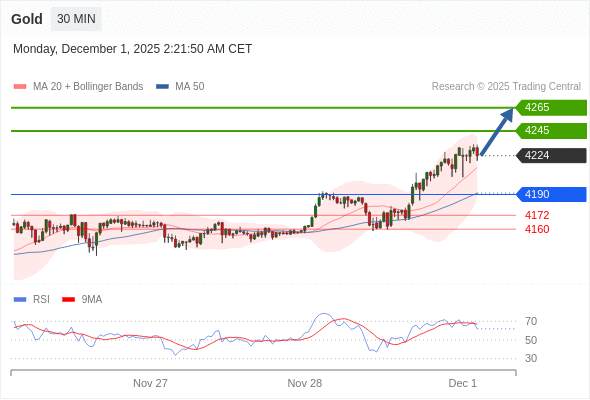 在 4190 之上,看涨,目标价位为 4245 ,然后为 4265 。