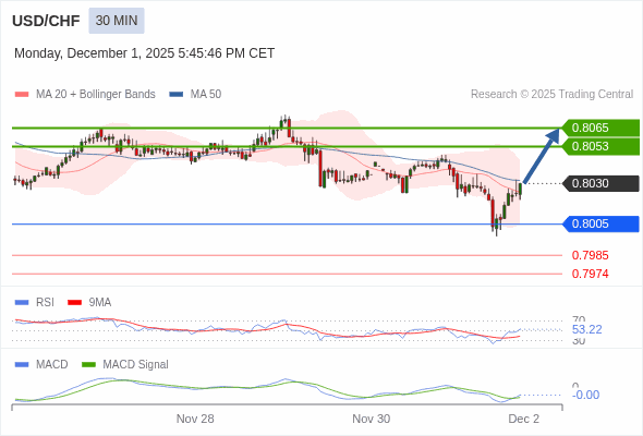 美元/瑞郎 当日内 : 看涨。