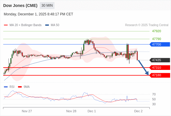 在 47700 之下,看跌,目标价位为 47310 ,然后为 47180 。