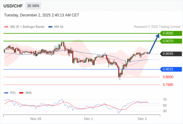 在 0.8015 之上,看涨,目标价位为 0.8070 ,然后为 0.8085 。