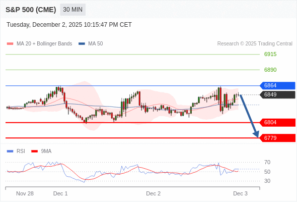 在 6864 之下,看跌,目标价位为 6804 ,然后为 6779 。