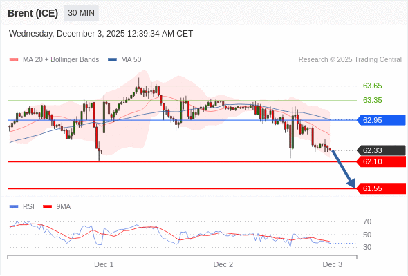 交易策略: 在 62.95 之下,看跌,目标价位为 62.10 ,然后为 61.55 。