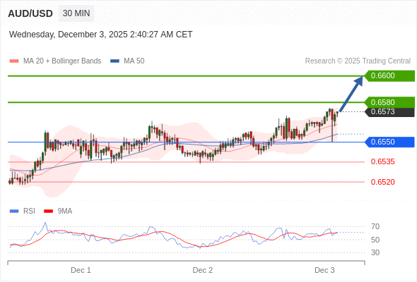 在 0.6550 之上,看涨,目标价位为 0.6580 ,然后为 0.6600 。
