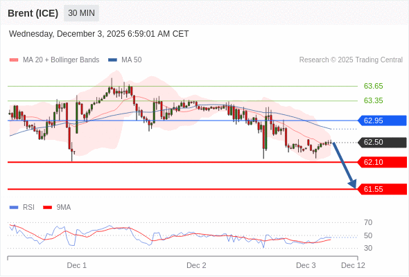 交易策略: 在 62.95 之下,看跌,目标价位为 62.10 ,然后为 61.55 。
