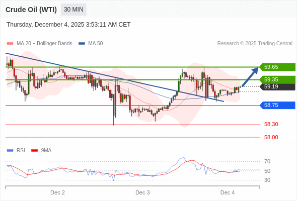 在 58.75 之上,看涨,目标价位为 59.35 ,然后为 59.65 。