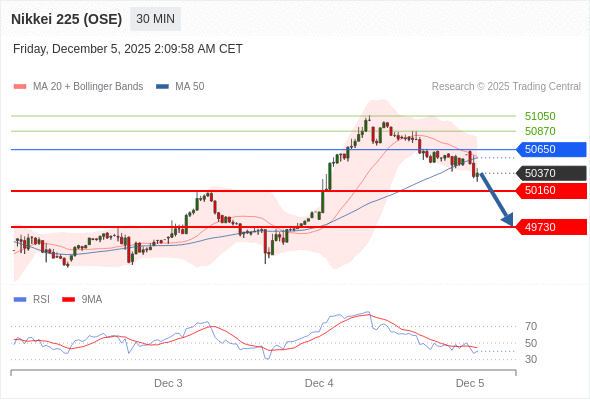 交易策略: 在 50650 之下,看跌,目标价位为 50160 ,然后为 49730 。