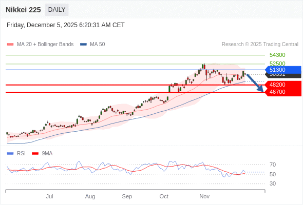 Nikkei 225 短线: 短期关键阻力位在51300。