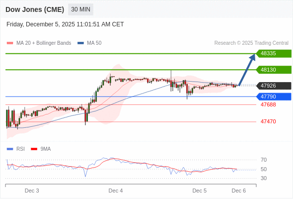 在 47790 之上,看涨,目标价位为 48130 ,然后为 48335 。