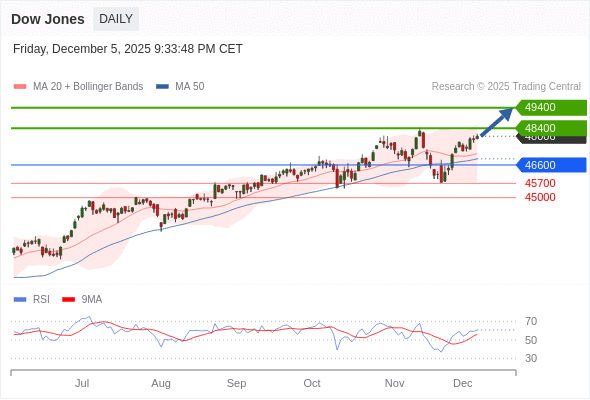 在 46600 之上,看涨,目标价位为 48400 ,然后为 49400 。