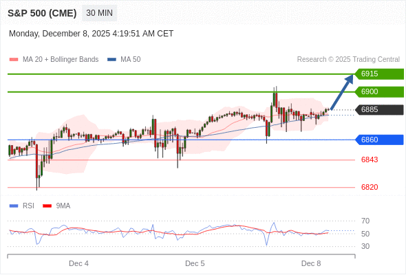 在 6860 之上,看涨,目标价位为 6900 ,然后为 6915 。