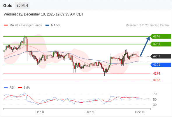 在 4191 之上,看涨,目标价位为 4231 ,然后为 4246 。