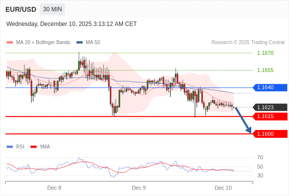 在 1.1640 之下,看跌,目标价位为 1.1615 ,然后为 1.1600 。