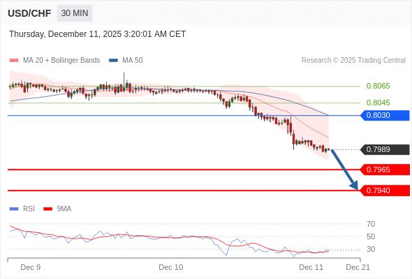 在 0.8030 之下,看跌,目标价位为 0.7965 ,然后为 0.7940 。