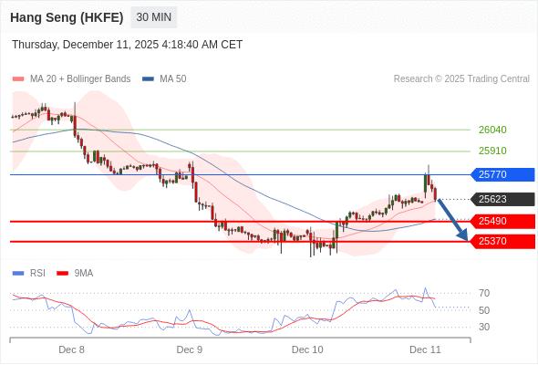 交易策略: 在 25770 之下,看跌,目标价位为 25490 ,然后为 25370 。