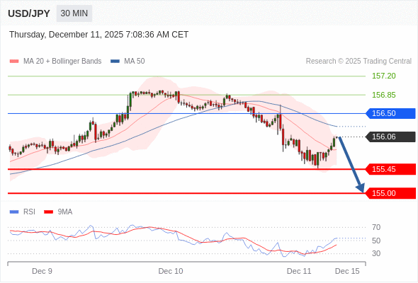 交易策略: 在 156.50 之下,看跌,目标价位为 155.45 ,然后为 155.00 。