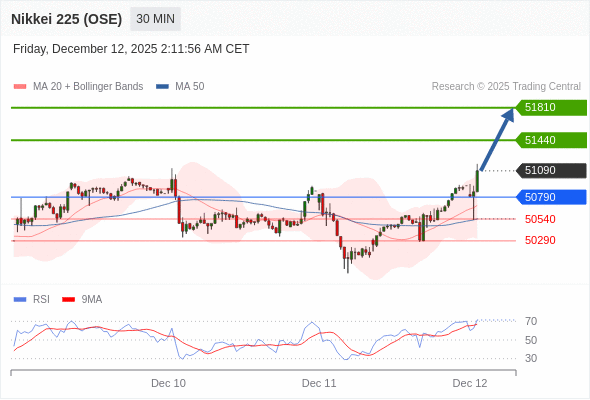 在 50790 之上,看涨,目标价位为 51440 ,然后为 51810 。