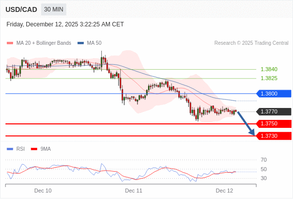 在 1.3800 之下,看跌,目标价位为 1.3750 ,然后为 1.3730 。