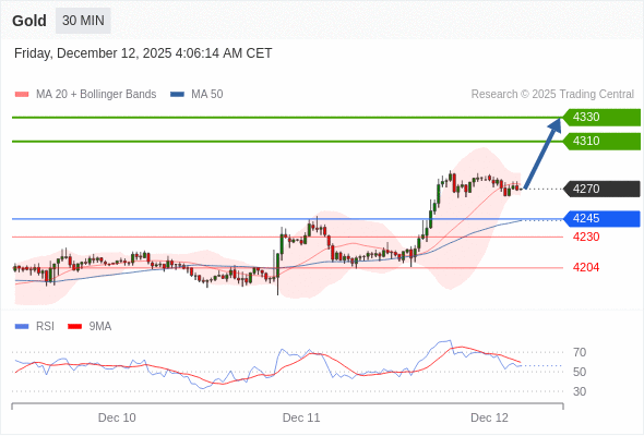 在 4245 之上,看涨,目标价位为 4310 ,然后为 4330 。