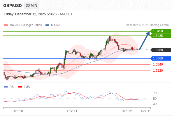 在 1.3360 之上,看涨,目标价位为 1.3435 ,然后为 1.3450 。