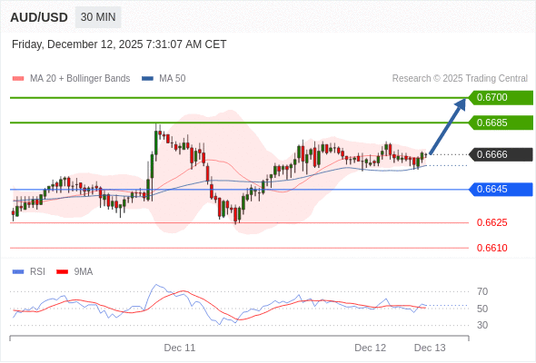 在 0.6645 之上,看涨,目标价位为 0.6685 ,然后为 0.6700 。